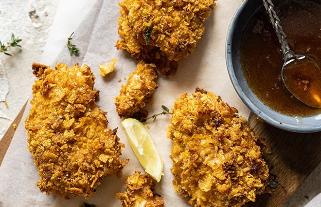 Tραγανιστό Ψητό κοτόπουλο με σάλτσα μέλι