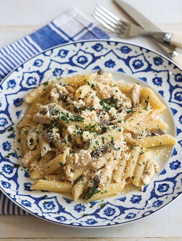 Ένα καλοκαίρι ο γιος μου πήγε διακοπές με τους φίλους του στη Μύκονο και διέμεναν σε ξενώνα δίπλα από ένα ιταλικό εστιατόριο. Όταν επέστρεψε, μου περιέγραψε με νοσταλγία ένα πιάτο που είχε δοκιμάσει στο νησί και το οποίο τον ενθουσίασε. Θεώρησα πως ο ενθουσιασμός του οφει-λόταν στο ότι όταν το δοκίμασε ίσως να πεινούσε πολύ, σε σημείο που το χαρακτήρισε «θεϊκό». Έτσι, όταν μια μέρα με παρακάλεσε να του φτιάξω μακαρόνια, αποφάσισα να προσπαθήσω να ετοιμάσω τα συγκεκριμένα που του είχαν κάνει τόση εντύπωση. Του ζήτησα, λοιπόν, να μου πει κάποια από τα υλικά που αναγνώρισε. Αξιοποιώντας την πείρα μου στη μαγειρική, κατάφερα να πετύχω την πρωτότυπη γεύση που είχε δοκιμάσει.